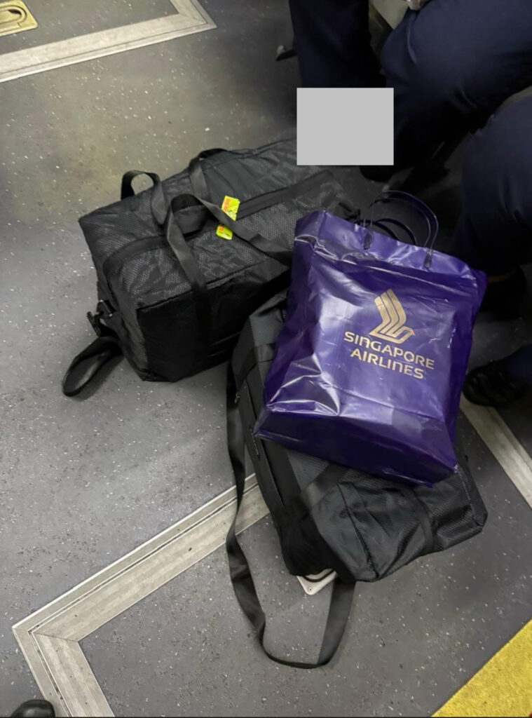 މާހިލް އާއި އޭނާގެ އެކުވެރިޔާ ގެނައި ދެ ލަގެޖް ފުލައިޓުން ބޭލުމަށްފަހު ބަލައި ފާސްކުރުމުގެ ކުރިން ނަގާފައިވާ ފޮޓޯ: “މި ދެލަގެޖުތެރެއިން ކަސްޓަމްސް އަށް ފެނުނީ ވޭޕް ސްޓިކްސް”