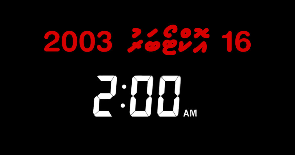 ވަގުތަކީ ސޯޅަ އޮކްޓޯބަރ 2003 ވީ ރޭގެ ދަންވަރު ދޭއް ޖެހި ވަގުތެވެ. ޢައިއިލާ އާއި އެއް ކޮށް ގޭގައި އަރާމުނިދީގައި ތިބި ދަންވަރުގެ ހިމޭން ވަގުތެވެ. ހޭލެވުނީ ބަޔަކު އައިސް ކޮޓަރީ ދޮރުގައި ބަންބަންބަލާފައި ތަޅާއަޑަށެވެ. އޭރު އަޅުގަނޑު ކުޑަކުޑަ ދެކުންނާއި އަބިމީހާ ވަނީ އަރާމުނިދީގައެވެ. ކޮންމެއަކަސް އަޅުގަނޑު ދެލޯއުނގުޅަމުން ގޮސް ކޮޓަރީގެ ދޮރުހުޅުވައި އެއީ ކޮންބައެއްތޯ ބެލީމެވެ. އަސްތާއެވެ. ކަމުދާކަށް ނެތެވެ. އައިސްތިބީ ފުލުހުންގެ ބައިގަނޑެކެވެ. އޭރު ފުލުހުންގެ އަނިޔާވެރިކަމާއި ގޮތްކުޑަކަން އަޅުގަނޑަށް އެނގިފައި ވާތީ އަޅުގަނޑަށް ކުއްލި ސިހުމެއް ލިބި ހާސްވެ މުޅި ހަށިގަނޑުން ވަރުދޫވިކަހަލައެވެ. އަޅުގަނޑު އަހައިފީމެވެ. ކިހިނެއްވީތޯއެވެ.